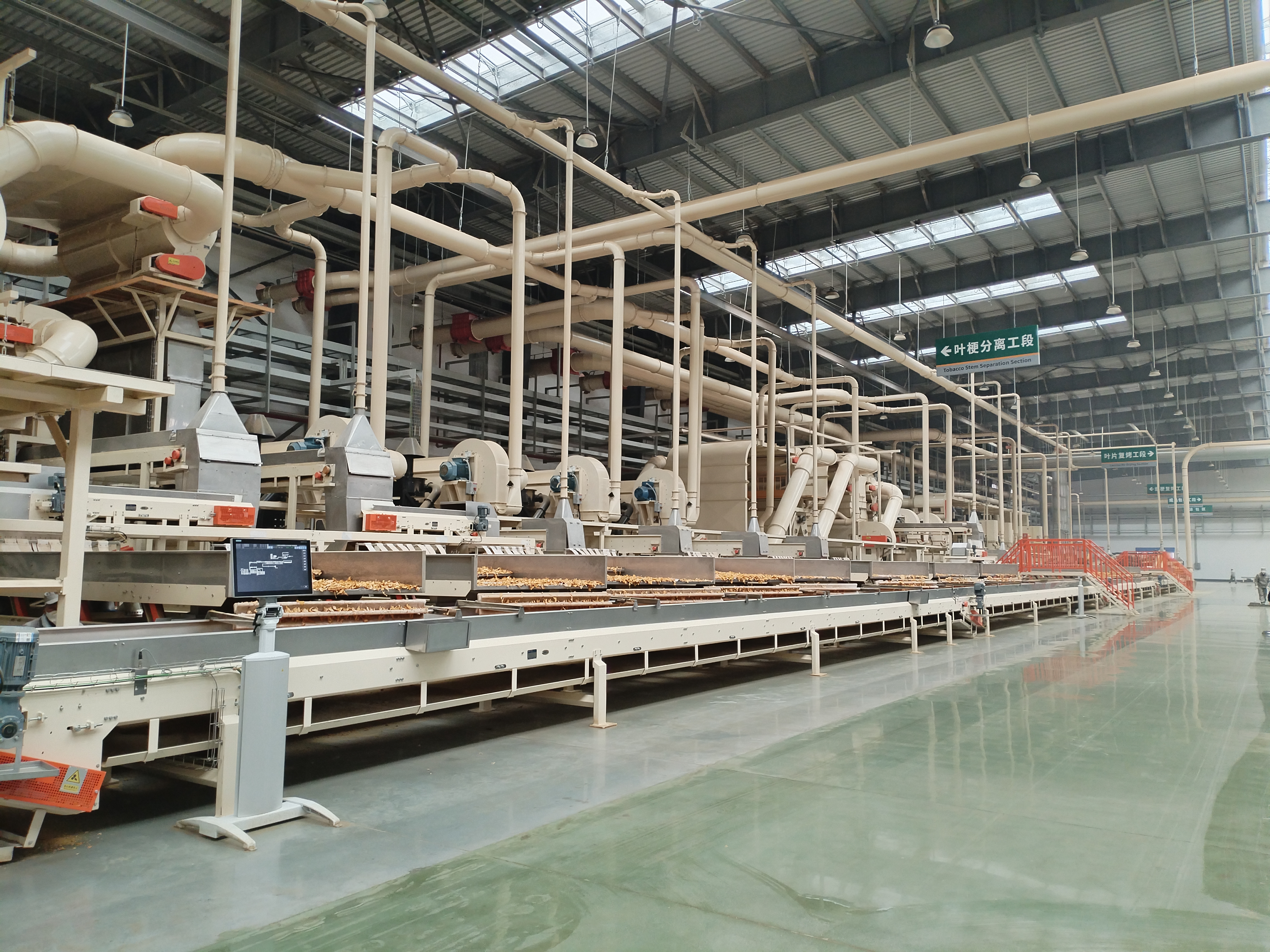 案例介绍:2022年实施的天昌国际烟草有限公司异地技改项目中采用了长高公司最新高效节能打叶机组,生产能力达到15000kg/h,各项指标全面超过行业标准,首次采用分流式风分工艺,获得行业好评。